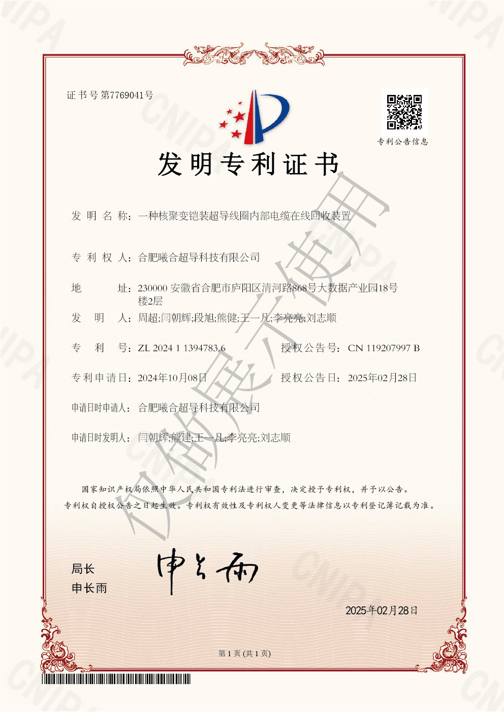 目前,曦合超导累计拥有专利30余件,软件著作权3件;并取得高新技术企业和安徽省专精特新中小企业资质,获得各类资质证书和奖项20余项。曦合超导已为全球60+用户(高校、科研院所、公司、央国企等)提供超导磁体产品,并实现多台海外销售,其中18T全超导磁体产品获得2023年安徽省首台(套)重大技术装备。